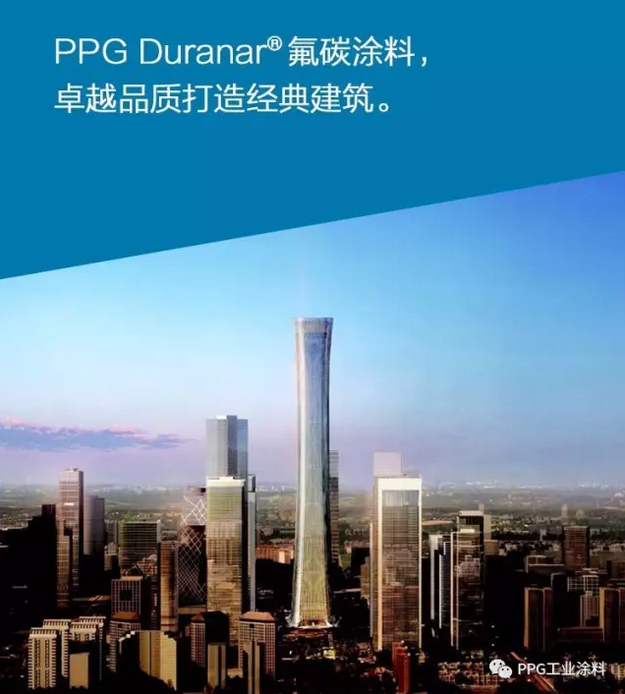 ![]() 即将在今年结构封顶的北京第一高度建筑——中国尊大厦,在此次建设中选择了PPG Duranar® XL氟碳涂料(闪银,银灰等,满足且全面超越AAMA2605的要求)来为其制定涂料解决方案。她位于北京商务中心核心区Z15地块,建筑总高528米,总建筑面积43.7万平方米。处于CBD中心的中国尊将集甲级写字楼、会议、商业、观光以及多种配套服务功能于一体,作为北京的新地标屹立于众大厦之中。
